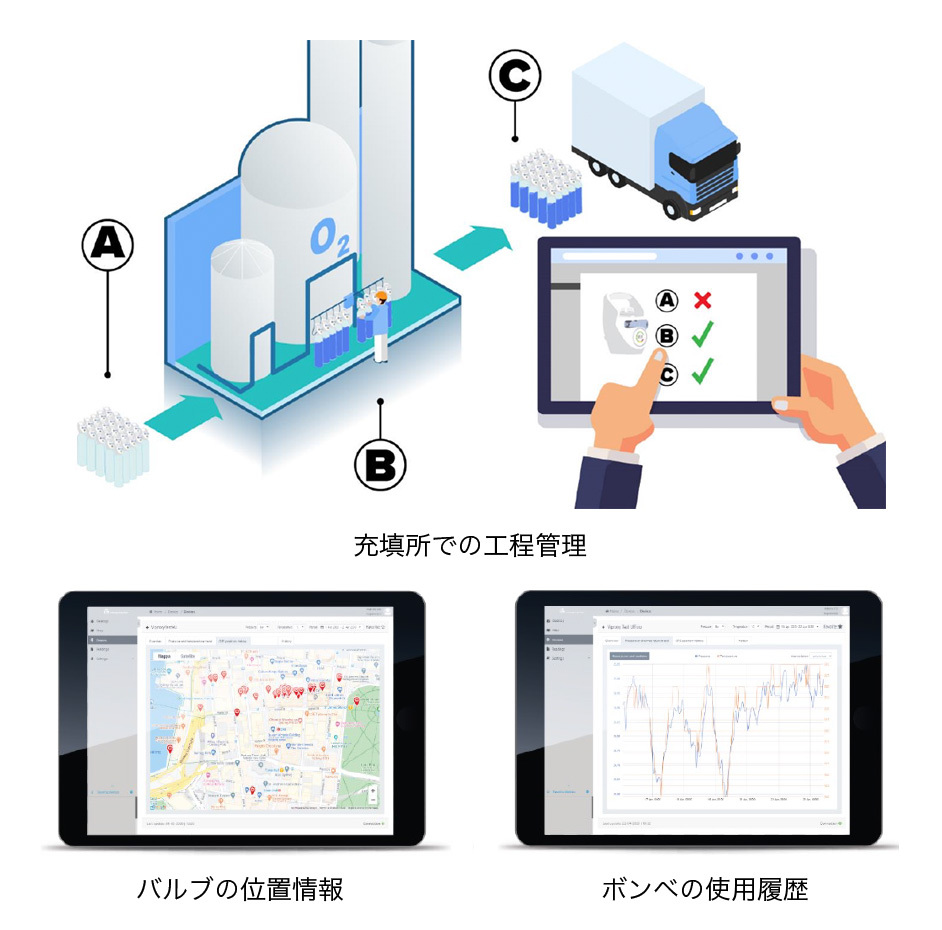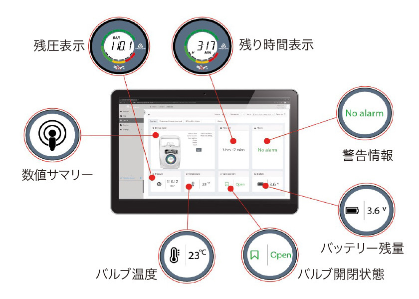 スマホ・タブレット・PCで酸素ボンベの状況を把握